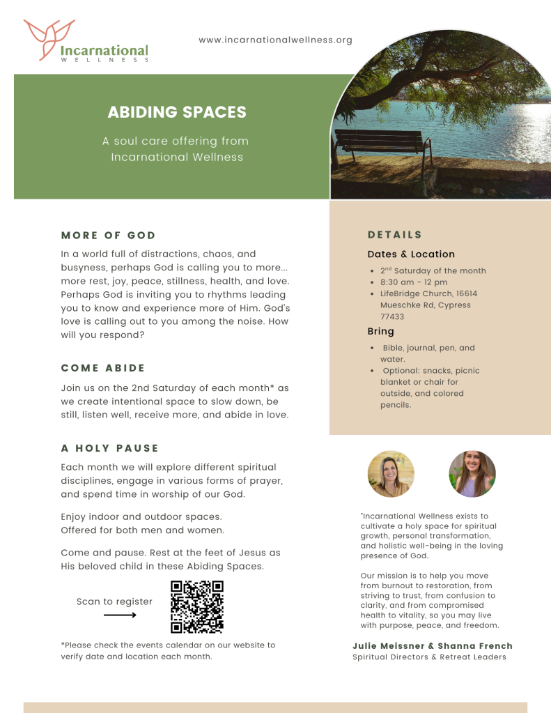 A time to slow down, be still, listen well and abide with God.